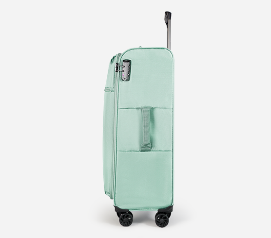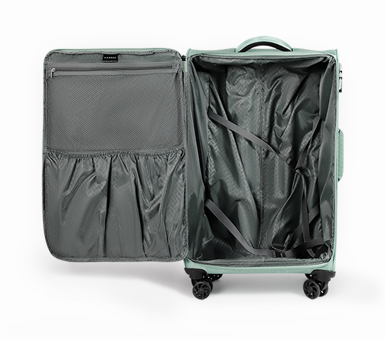 Crafted from durable 2-tone polyester, this cassia softshell suitcases trolley features smooth 4-spinner wheels with a lightweight cut-out design, a large front zip pocket, smart packing straps, and a strong kick-plate base for enhanced durability.The large zipped front pocket allows quick access to essentials such as documents or travel accessories. Inside, packing straps with a Smart Fix feature keep the straps neatly to the side while packing, making organization easier and more efficient. A reinforced kick-plate base adds extra protection and durability, making this trolley ideal for frequent travel and long journeys.